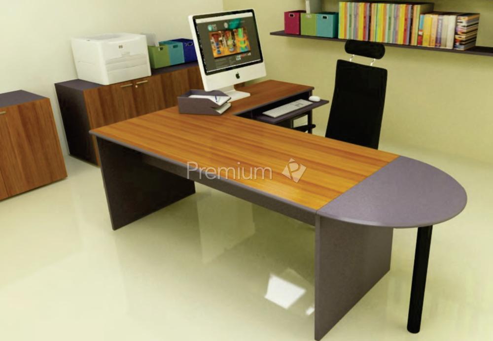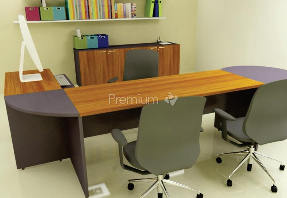 Tapa enchapada en madera natural con terminación poliuretanica y buñas de aluminio. Base construida en mdf curvado laqueado negro con regatones de aluminio pulido.